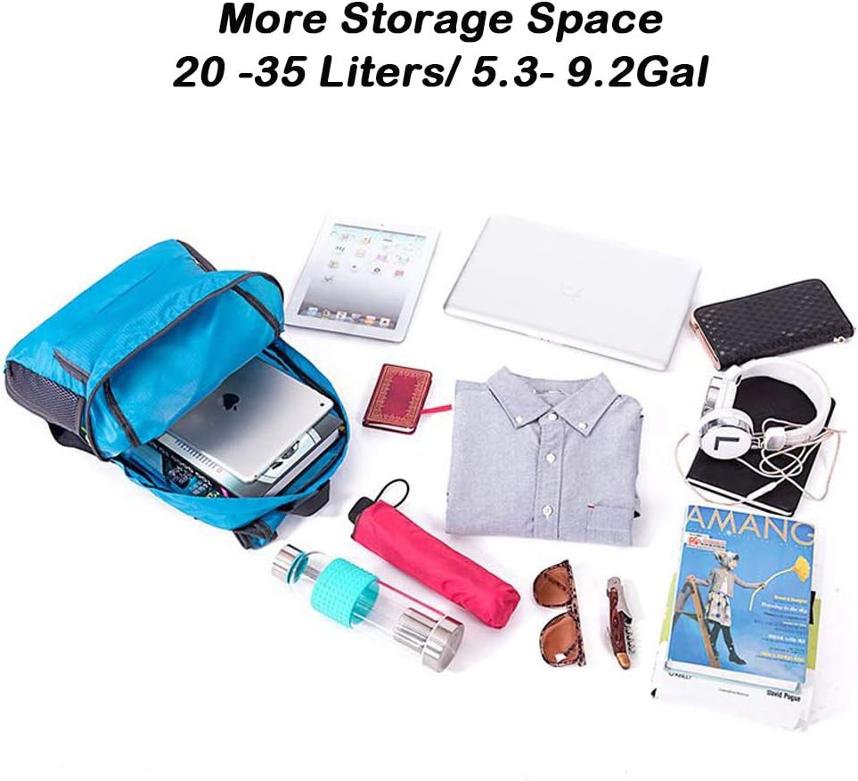 Pack of 2 Lightweight Foldable Backpack, Water Resistant Travel Hiking Packable Backpack 20 Liters (Black & Blue) for Camping, Outdoor, Travel Cycling
