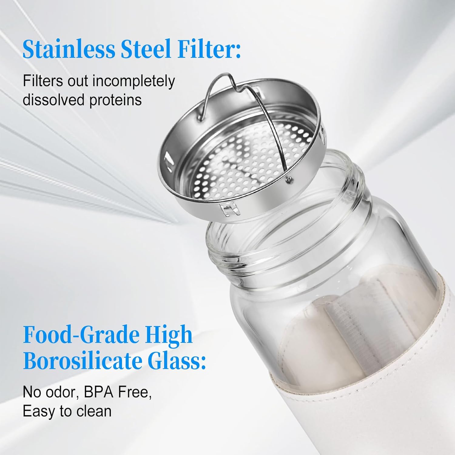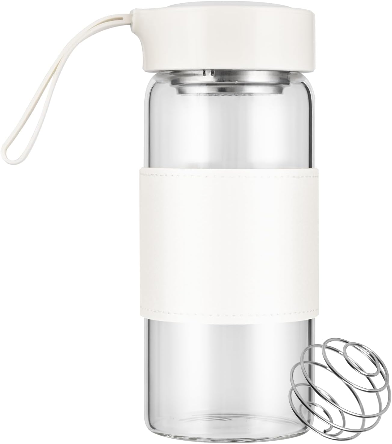 Small Glass Shaker Bottle,16oz BPA Free Odorless Shaker Bottle with 304SS Mixing Ball and Removable Cleaning Brush for Fitness & Protein Shakes(White-1Pack)