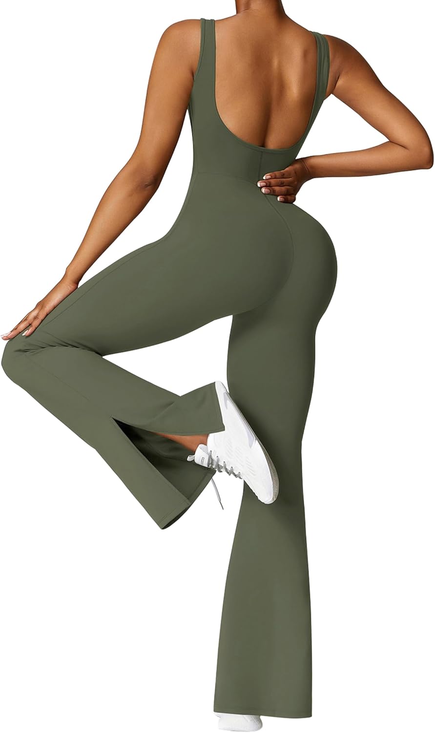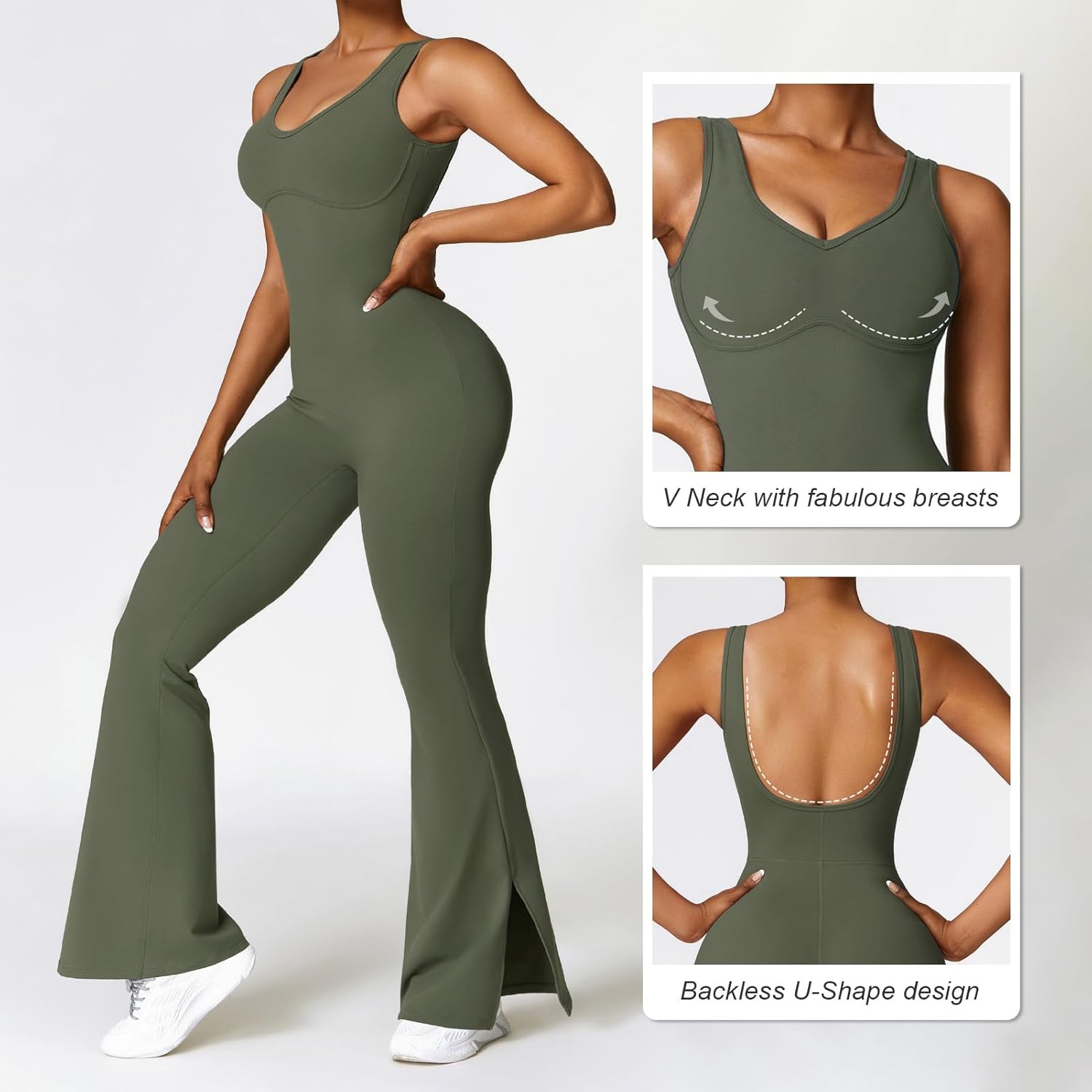 - ❤️The chic backless jumpsuit features a sleeveless tank top, a flattering V-neckline, and flare pants that create a sleek, modern silhouette.